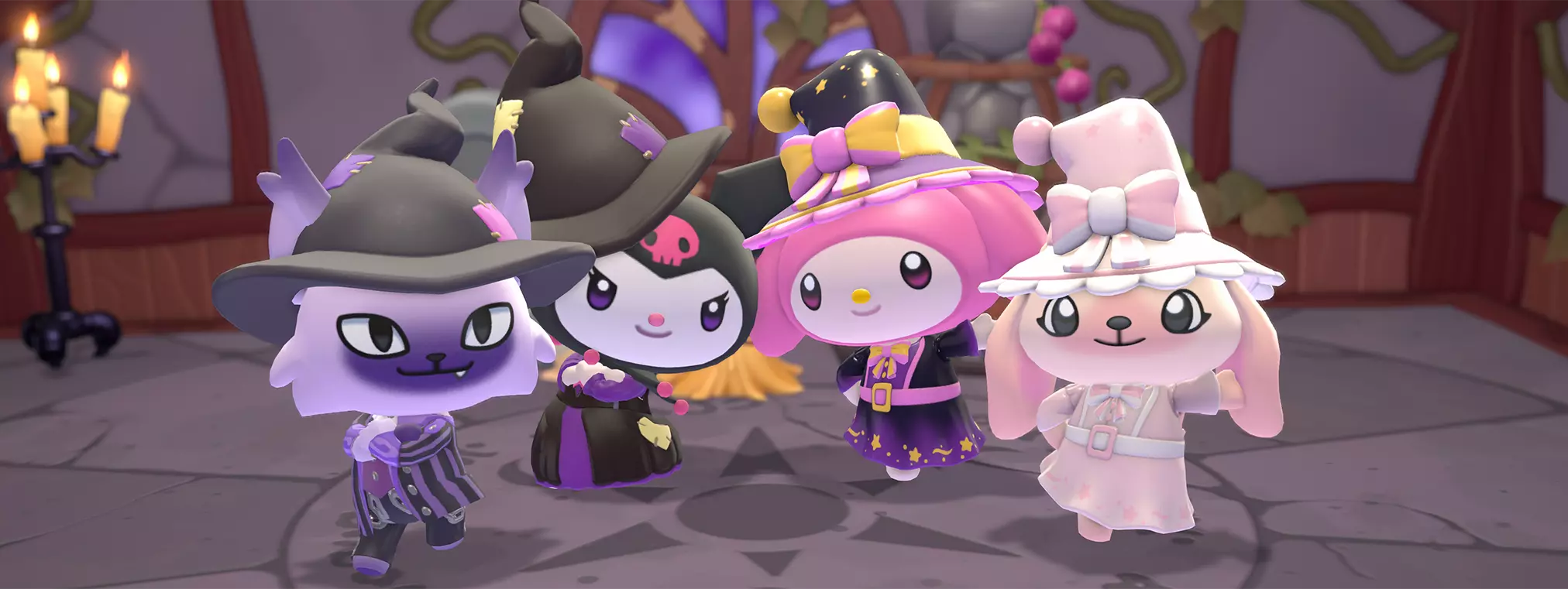 随着幽灵庆典的到来,让我们向万圣节女王致敬! 挑选一套服装,在友谊岛上挨家挨户玩“不给糖就捣蛋”来赢取女巫风格的奖励,还要帮助库洛米教美乐蒂变得有那么一点点吓人。 巴库打扮得帅气十足,大耳狗则在努力管束着噩梦精灵,还有南瓜香料苏打可以畅饮。 趁现在赶紧收集你的糖果吧;幽灵庆典将从即日起持续至2025年11月6日。