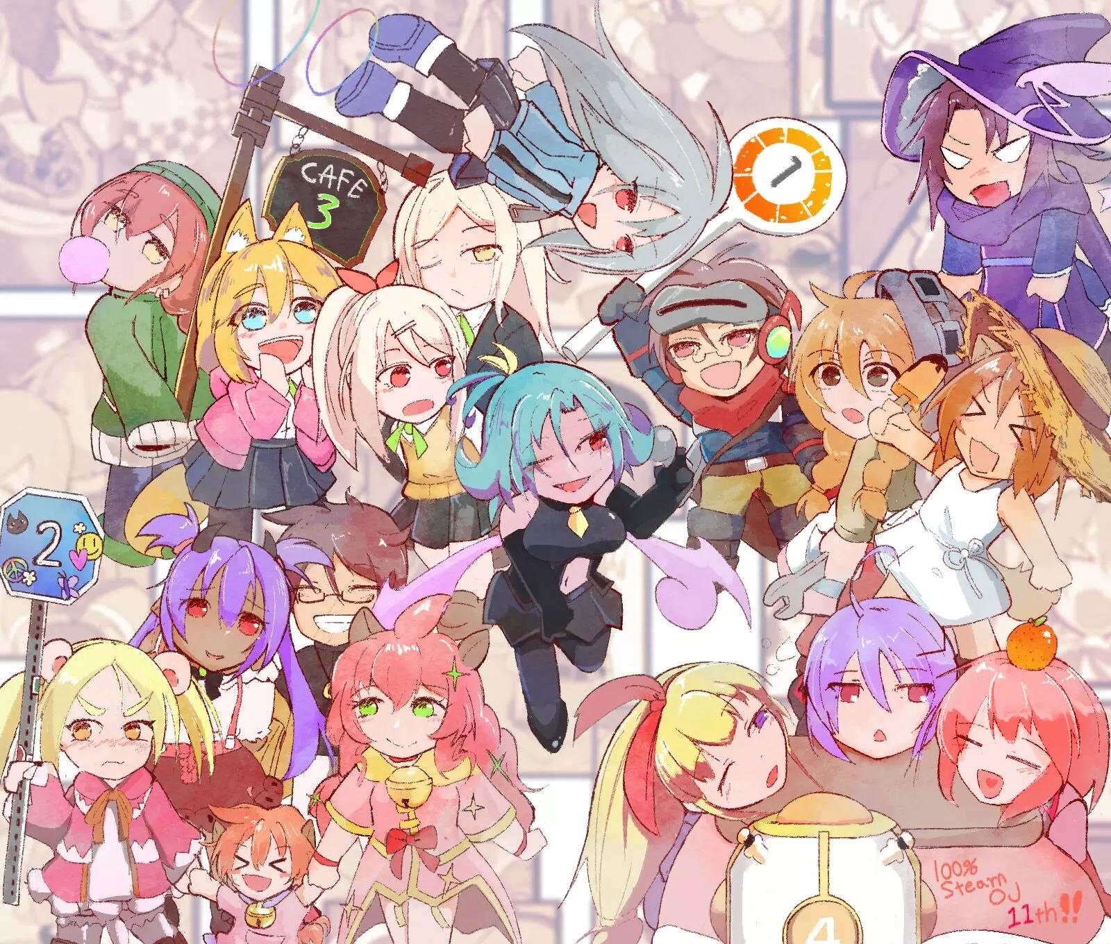 感谢您的等待!2025年粉丝艺术大赛的获奖者已确定! 本次大赛收到了超过140份参赛作品,创下了新的记录,因此我们邀请了众多评委进行评审,但仍无法完全避免出现并列的情况。许多优秀的作品未能入选,但您可以在《100%鲜橙汁》的Steam艺术作品区找到所有参赛作品!欢迎您前去欣赏并评论您喜爱的作品! 如果您发现某件作品没有出现在获奖名单中,可能是因为每位艺术家只能获奖一次,而他们的另一幅作品在某个类别中获得了更高的名次! 此外,我们还设有一个惊喜特别奖项:评委推荐奖!OrangeJuice的Hono和Junpyon各自挑选了他们最喜欢的参赛作品。这些作品的作者也将获得《100%鲜橙汁》主题毛绒玩具+游戏内大赛获胜者徽章!我们将联系所有获奖者,请尽快查看您的电子邮件。 接下来,公布获奖者名单! 评委选择奖(Hono) 艺术家:闰间齿轮