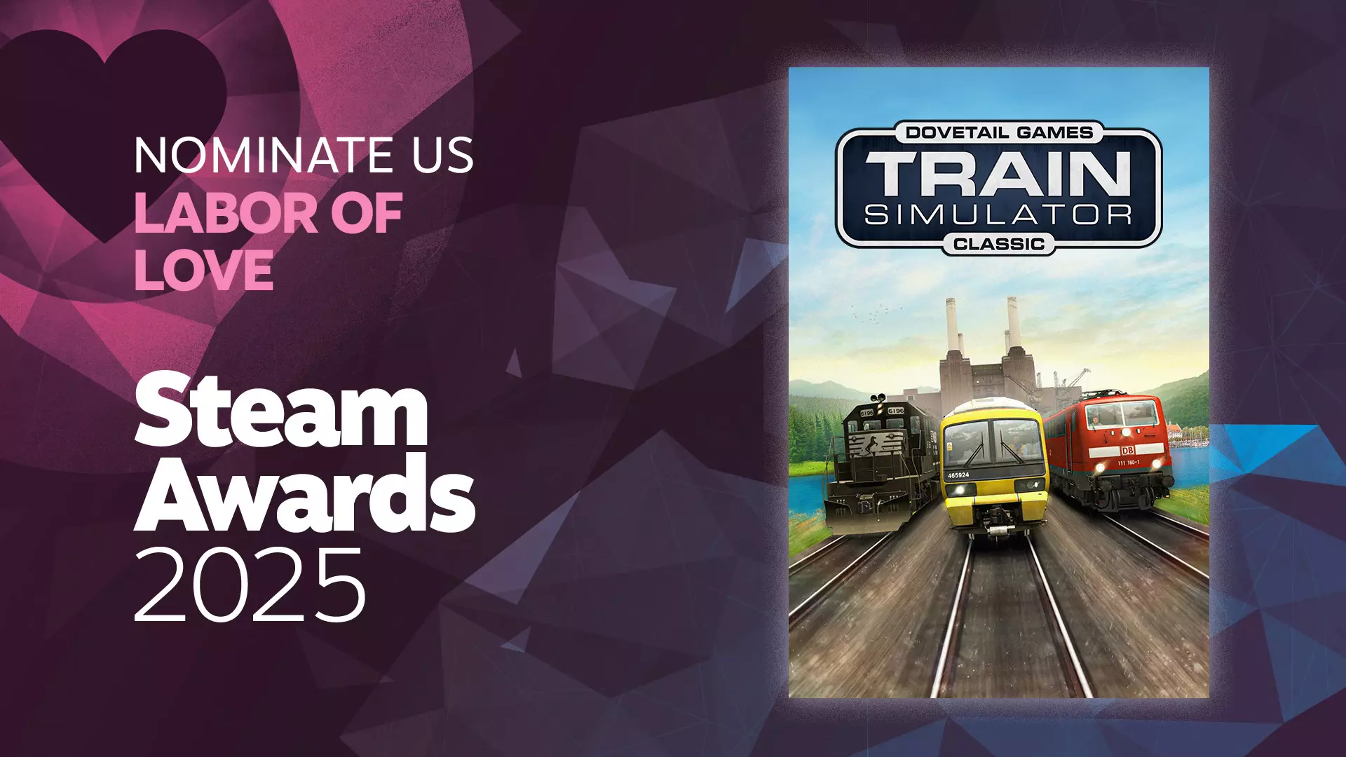 《模拟火车经典版》是我们工作室推出的首款作品,也是工作室诞生的契机。从一开始,它就得到了社区的支持,玩家们创作的模组和附加内容让这款游戏不断发展,拥有了自己的生命力。经过多年的稳步进化,如今仍有面向全球铁路爱好者的新内容持续产出,使得《模拟火车经典版》在今天依然和2009年初发布时一样具有吸引力。 为《模拟火车经典版》投上你宝贵的一票,助力其角逐Steam“爱的付出”奖项!