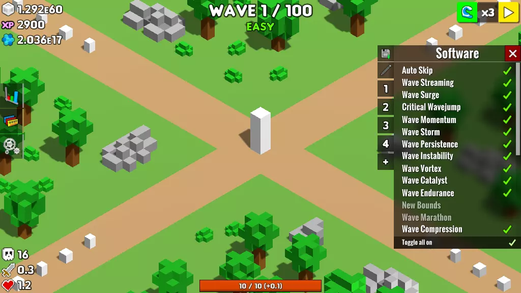模块平衡与数值调整 大部分模块现在可升级至T250级。此前,许多模块的等级上限仅为T5,过早停止升级使得部分模块的培养乐趣大打折扣。对于部分模块而言,这一问题在游戏后期尤为明显——它们会因数值固定而迅速失去作用,尤其是那些带有绝对值加成的模块。 新的模块等级上限(T250)将根据模块的原始效果进行差异化数值调整: - **部分模块**可直接基于原有成长逻辑提升数值,在保持平衡性的同时确保其持续实用性。 - **另一部分模块**(如带有减速百分比等效果的模块)调整难度较高,需控制数值增幅以避免突破阈值导致游戏失衡。部分模块的数值缩放机制已进行全新调整,使其在低等级时强度略有降低,但在高等级时的强度将远超旧有上限。具体而言,部分伤害模块的伤害缩放比例发生了显著变化,升级到下一等级时的伤害衰减幅度更小。此前,模块升级后伤害值往往会降至个位数或两位数区间,导致其基本失去作用。 除此之外,部分模块的定义也进行了一些根本性调整(前方剧透)。例如,无限模块现在被认定为无限等级,这意味着它们可以被带入任何挑战,不受挑战的等级限制影响。这为你提供了一个新的机会,让你在游戏后期能够通过使用终局模块来挑战更困难的关卡。实际上,只要你达到这一阶段,无需任何策略或攻略也能轻松通关。 此外,模块的掉落率以及解锁模块的固定波次也进行了调整: - **多重射击模块的解锁时间提前**,为你提供了更快通关前100波的新选择。 - **许多低概率区域模块的掉落率得到提升**,同时新增了更多影响模块掉落率的建筑技能和升级。 - 现在解锁所有区域模块的过程不再那么肝了。指挥部 除了使界面整体风格更加简洁外,指挥部的升级成本也进行了平衡,以提高前期游戏的可用性。服务器成本大幅降低,CPU/内存升级也相应进行了平衡。**自动跳过和波形流是两个核心软件组件,因此我们降低了它们的价格和安装时间。现在它们是前期发展中更合理的一部分。** 软件配置方案 关于软件最实用的新增功能之一,是期待已久且经常被要求的软件配置方案。它们一直都在我们的计划添加列表中,但优先级一直不够高,直到我们完全重新游玩了游戏。现在你可以在游戏中为各种场景创建、编辑、导入和导出软件配置方案,让你能随时轻松启用或禁用多个软件升级。AI脚本也能完全控制配置方案的应用,这意味着你可以编写更简短的脚本来更改当前的软件配置。
