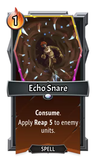 | | 怪物火车1 | | 怪物火车2 | | ---- | ---- | ---- | ---- | | 类型: | 法术 | 类型: | 未变更 | | 效果: | 消耗。<br>对敌方单位施加收割2。 | 效果: | 消耗。<br>对敌方单位施加收割5。 | 回响转移