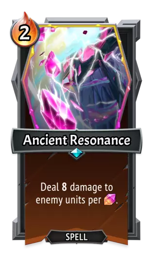 |《怪物火车》| |《怪物火车2》| |----|----|----|----| |单位类型:|法术|单位类型:|装备| |属性:|抽取3张牌。<br>抽3张牌。<br>对抽到的法术施加消耗效果。|属性:|技能:回响灼烧。<br>回响灼烧:冷却时间2。抽取3张牌。抽2张牌。| 远古共鸣