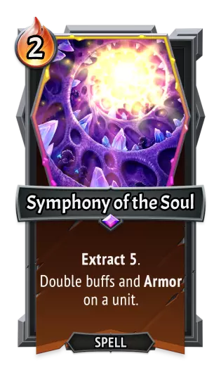 [table equalcells="1" colwidth=","][tr][th colspan="2"] [/th][th colspan="2"] [/th][/tr][tr][td] 类型:[/td][td] 法术[/td][td] 类型:[/td][td] 法术[/td][/tr][tr][td] 效果:[/td][td] 抽取3点。 对一个单位施加3层晕眩效果并将其移至后排。[/td][td] 效果:[/td][td] 抽取3点。 撤退。施加2层晕眩效果。[/td][/tr][/table] 灵魂交响曲