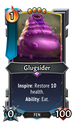 | 怪物火车 | | 怪物火车2 | | | --- | --- | --- | --- | | 类型: | 单位 | 类型: | 单位 | | 特性: | 横扫。<br>铭刻:对敌方单位施加收割2。 | 特性: | 回合结束时:所有楼层获得1回响。<br>技能:死神降临。<br>单位技能:对所有楼层的敌方单位施加收割6。 | | 攻击力: | 5 | 攻击力: | 15 | | 生命值: | 20 | 生命值: | 30 | Glugsider