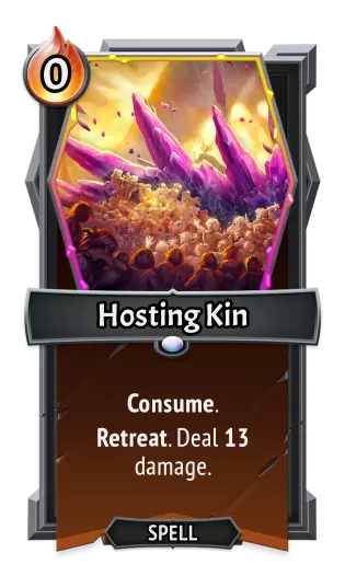 | [《怪物火车》](https://store.steampowered.com/app/1102190/Monster_Train/) | | [《怪物火车2》](https://store.steampowered.com/app/2379780/Monster_Train_2/) | | | --- | --- | --- | --- | | 类型: | 单位 | 类型: | 单位 | | 属性: | 提取 4<br>激励:恢复5点生命值<br>复仇:对攻击单位施加收割5 | 属性: | 激励:恢复10点生命值<br>能力:吞噬<br>单位能力:提取4<br>消灭一个敌方非首领单位 | | 攻击力: | 0 | 攻击力: | 0 | | 生命值: | 200 | 生命值: | 100 | Hosting Kin