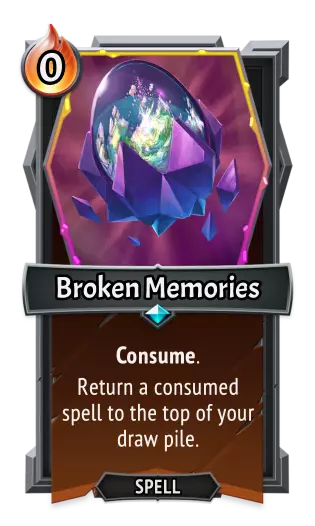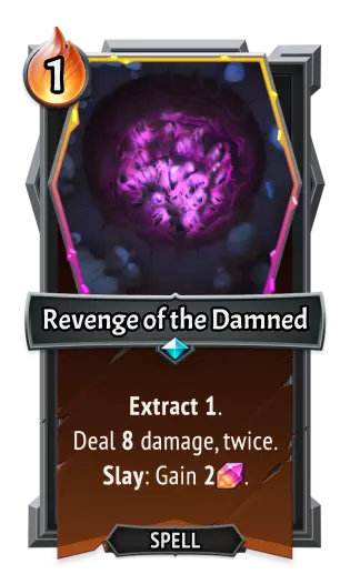 [table equalcells="1" colwidth="0,172,172,0"][tr][th colspan="2" colwidth="0,172"] 《怪物火车》[/th][th colspan="2" colwidth="172,0"] 《怪物火车2》[/th][/tr][tr][td] 类型:[/td][td colwidth="172"] 法术[/td][td colwidth="172"] 类型:[/td][td] 法术[/td][/tr][tr][td] 效果:[/td][td colwidth="172"] 将一张法术牌从弃牌堆移回你的手牌。附加“注入”、“减少1点能量”和“消耗”效果。[/td][td colwidth="172"] 效果:[/td][td] 独特。 将一张法术牌从弃牌堆移回你的手牌。附加“注入”和“消耗”效果。[/td][/tr][/table] 诅咒之复仇