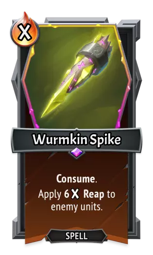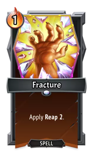 |《怪物火车》| |《怪物火车2》| | |----|----|----|----| |类型:|法术|类型:|法术| |效果:|消耗。<br>对敌方单位施加4倍收割(Reap)效果。|效果:|消耗。<br>对敌方单位施加6倍收割(Reap)效果。|
