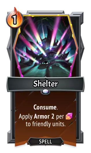 | |《怪物火车》| |《怪物火车2》| | ---- | ---- | ---- | ---- | |类型:|单位|类型:|单位| |属性:|激励:+2攻击力和2点护甲值|属性:|激励:+3攻击力和3点护甲值| |攻击力:|20|攻击力:|20| |生命值:|30|生命值:|30| Shelter