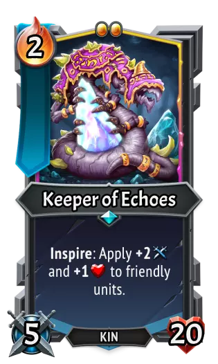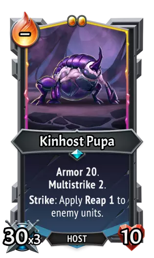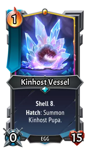 |《怪物火车》| |《怪物火车2》| | |----|----|----|----| |类型:|单位|类型:|单位| |属性:|打出时,每有1个回响,获得+10攻击力、+10生命值和+1容量。|属性:|技能:回响成长。<br>单位技能:每有1个回响,永久获得+2攻击力和+2生命值。清除回响。| |攻击力:|10|攻击力:|10| |生命值:|10|生命值:|10| Kinhost Pupa