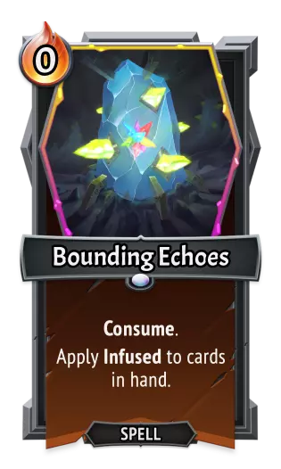 [table equalcells="1" colwidth=","][tr][th colspan="2"] 《怪物火车》[/th][th colspan="2"] 《怪物火车2》[/th][/tr][tr][td] 类型:[/td][td] 法术[/td][td] 类型:[/td][td] 法术[/td][/tr][tr][td] 效果:[/td][td] 每层回响(ECHO)使攻击力+6。清除回响。[/td][td] 效果:[/td][td] 每层回响(Echo)使攻击力+8。清除回响。[/td][/tr][/table] 永恒晶石
