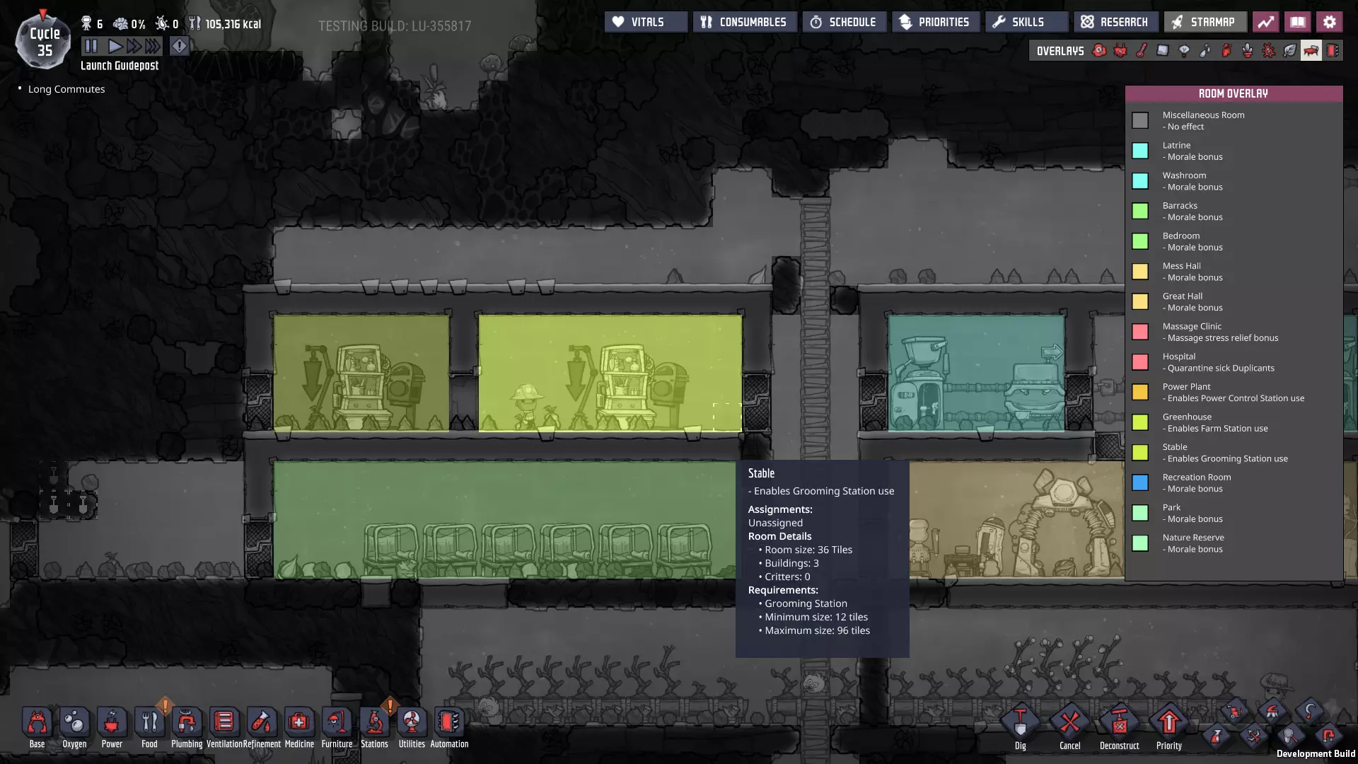 计划中的选址需要将自然保护区降级为公园,但这是我愿意做出的牺牲。虽然我没有在这里展示覆盖层,但我已将该区域的任务优先级设为3——这样就能优先处理沼泽生物群系的工作。无法进入沼泽的人员将转而在这里工作。 最终,所有挖掘工作完成,房间结构也已准备就绪: