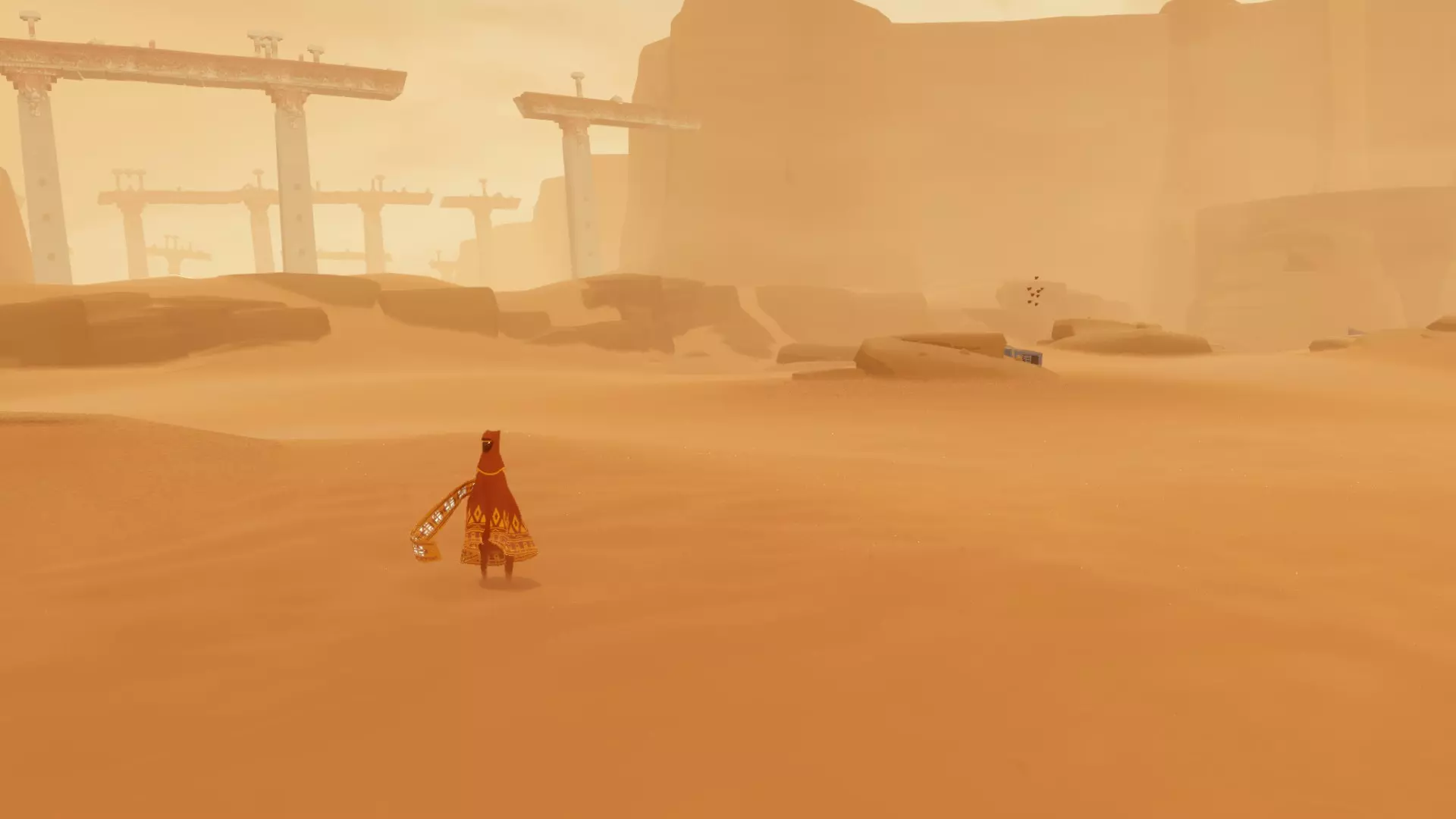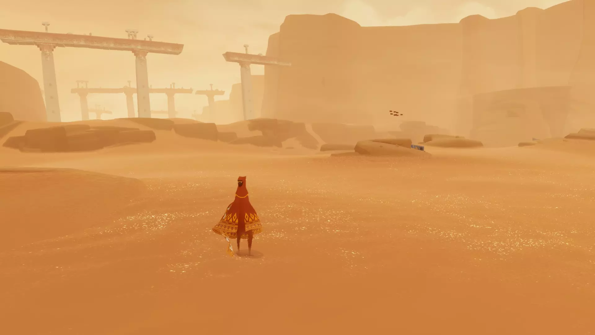 FridiNaTor 提供的新替代方法! 评论内容: 前往 %AppData% Local Annapurna Interactive Journey Steam 目录,打开 Journey.cfg 文件(可用记事本打开),然后选择替换功能。找到 VelvetSpecularCorrection="0.25" 并将其替换为 VelvetSpecularCorrection="0.15",选择全部替换。这样就能获得全画质的沙子,并且拥有与 PS3 原版相同的闪光效果了。