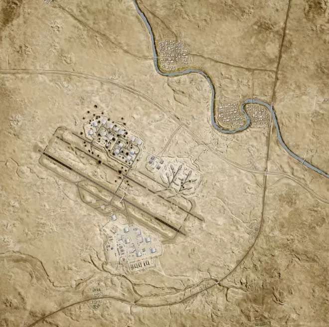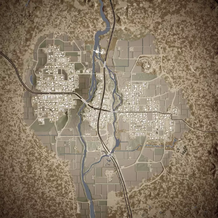 虽然乍一看这个地区显得田园诗般宁静祥和,但由于其靠近公路且拥有天然灌溉的农田,这里已成为一片争议领土。当地居民早已逃离了他们的家园和店铺,但军事城镇的街道却并不平静,地面部队正试图控制这个位于叙利亚和伊拉克之间沙漠中的道路交叉口。 ~ 游戏描述 6.5 塔利尔郊区