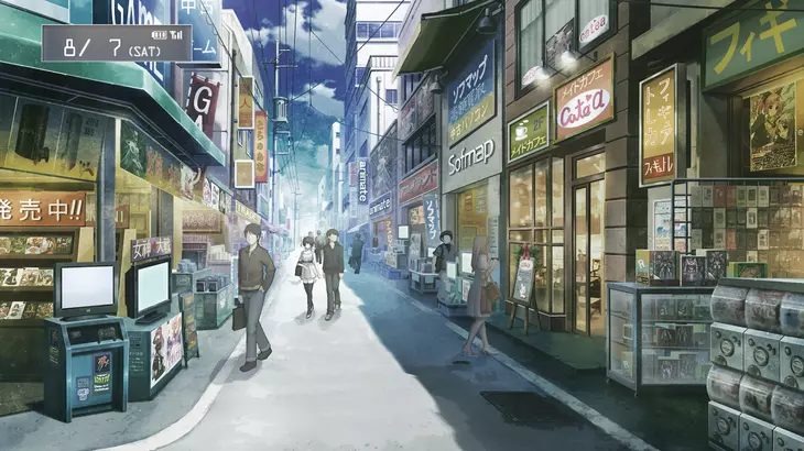外国人与徽章 引用自 norfolk_s3d:这个家伙在游戏里站在哪里——不是很清楚。我猜是在这里(街角被削平的建筑里的商店,旁边正好有两条小巷),你们觉得呢? 要知道,在这条β世界线[steins-gate.fandom.com]中,秋叶原并没有动画。而且在动画系列中,徽章交易是在另一个地方进行的[www.google.com]。 在《命运石之门:线性拘束的表征图》里,这个地方是一样的,但周围的动画场景是存在的。Feba,[ru.myanimeshelf.com]感谢提供的截图。