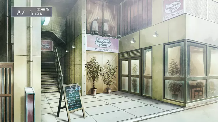 街景[www.google.com] 五月女王喵² 菲莉丝和真由理在这家咖啡馆打工,游戏中它名为五月女王喵²,[steins-gate.fandom.com]现实中则名为Mailish。[www.mailish.jp]