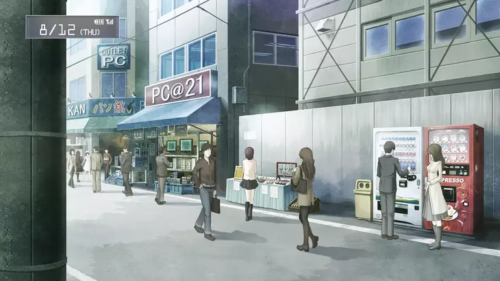 来源 引用自 norfolk_s3d:在确定位置、拍摄照片和撰写报告的过程中,以下信息对我提供了帮助: 迈克·八津关于秋叶原和秋叶神社的第一篇[mikehattsu.blogspot.com]和第二篇[mikehattsu.blogspot.com]帖子。[mikehattsu.blogspot.com]他还去过很多其他动漫中的地点并拍摄了照片,大家可以去看看! 一篇匿名帖子[otaku-pilgrimages.blogspot.com]让我发现了wotadiver的一个非常有用的视频。 我之前已经提到过的世嘉互动(SinePresto)的视频。简短剧情及章节对应关系[steins-gate.fandom.com]游戏章节与动画集数的对应。 动画场景视频。 超棒的动画报告[blog.livedoor.jp]。内容均为日文,但你应该能看懂。至少试试看,这位朋友花了数月时间游历各地,进行寻找、拍摄并撰写。 Alfred_Toh[ru.myanimeshelf.com]制作了秋叶原导览,[mipon.org]其中包含《命运石之门0》的动画画面。 附加内容 御田炖[ru.wikipedia.游戏中并未显示罐头,但在第二章,真由理给她的朋友们买了罐头。 自动贩卖机售卖冷汤和热汤。罐头内配有勺子,以便取出里面的食物。