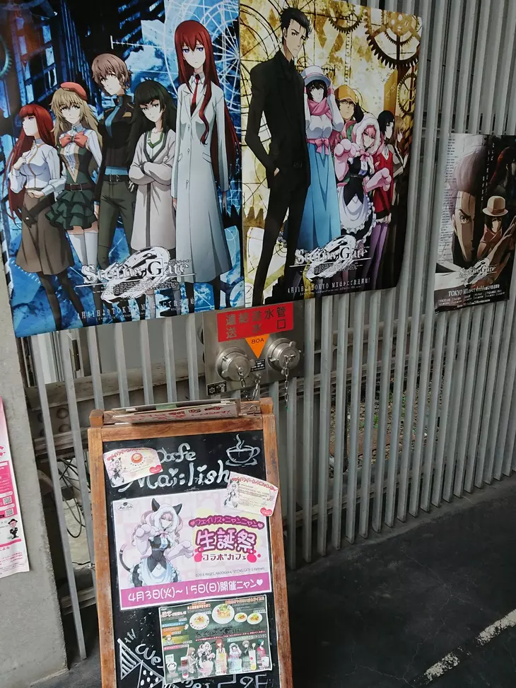 街景[www.google.com] СинэПрэсто(暂译)擅自拍摄了内部视频。 额外内容:外部的海报。似乎是为了庆祝费里斯的生日以及《命运石之门0》的开播而举办的活动。[steins-gate.fandom.com]
