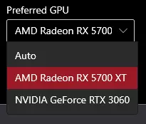以我的情况为例,我希望我的RTX 3060作为渲染GPU,其ID显示为PCI VEN_10DE&DEV_2504&SUBSYS_397D1462。 当然,你的ID会有所不同。找到你的ID后,必须将其转换为可用的值。我的最终结果是10DE&2504&397D1462,所以你需要从原始ID中删除VEN_、DEV_和SUBSYS_,这样就能得到下一步可用的值。 现在打开注册表编辑器(regedit),导航至: HKEY_CURRENT_USER\Software\Microsoft\DirectX\UserGpuPreferences 然后在该位置创建一个名为“DirectXUserGlobalSettings”的字符串值,并将其值设置为“HighPerfAdapter=GPUID”,将其中的GPUID替换为你拥有的渲染GPU的ID。这样做的目的是让你能够手动选择哪些游戏使用渲染 GPU,因为在 Windows 10 系统中,当尝试在“省电”和“高性能”GPU 之间进行选择时,通常只会显示一个选项,而此方法可以解决该问题。