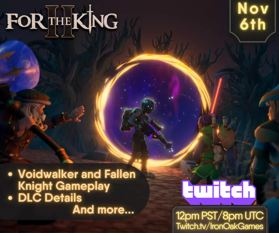 再次感谢各位冒险者一直以来的支持。我们已经迫不及待想让大家体验即将推出的内容,以及我们为新的一年准备的所有计划好的精彩内容。 别忘了,我们将在不到两小时后在IronOak Games的Twitch频道进行直播,展示虚空行者和堕落骑士,千万不要错过: 勇往直前,无畏的英雄们! ⚔️IronOak Games