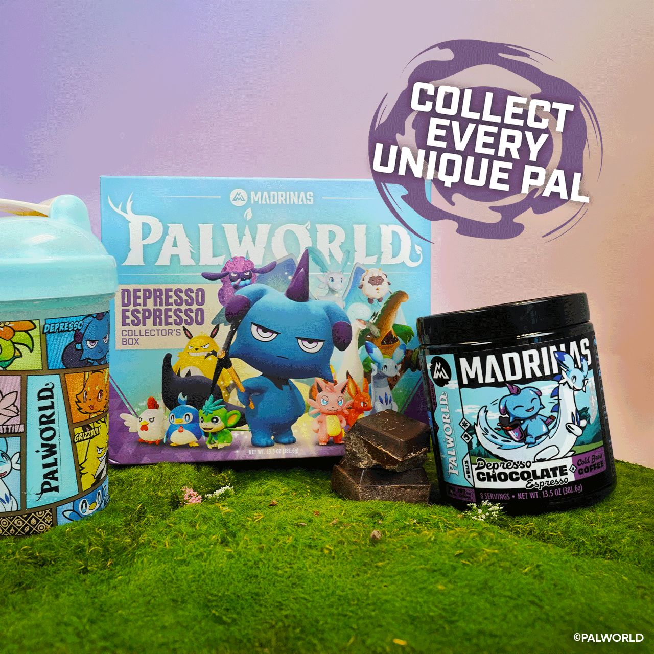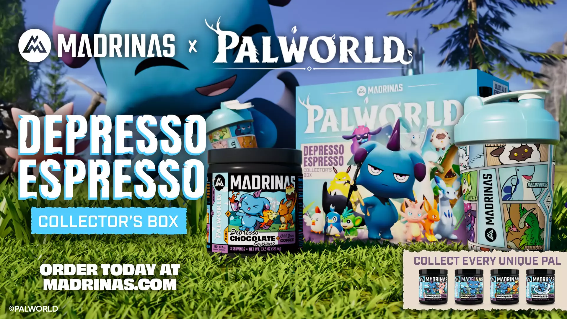 Depresso真正喜欢的东西来了! 我们与@Madrinas合作,为你带来《幻兽帕鲁》限定版收藏盒——内含《幻兽帕鲁》摇摇杯和Depresso巧克力浓缩冷萃咖啡。共有4款独特的Depresso标签可供收集,没错……你会想把它们全部集齐的。 用这款连Depresso都觉得够“丧”的咖啡,为你的冒险(或者只是下一次漫长的采矿 session)补充能量吧。