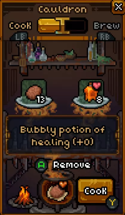 烹饪与口粮 坩埚的第二种模式是烹饪!但这可不是勃艮第牛肉或舒芙蕾之类的精致菜肴。在地下城,烹饪是为了生存。烹饪过程很简单,只需将两种可食用的食材混合在一起,就能制作出一种名为“口粮”的营养团。 只要食材没有被诅咒,所有食物都会被烹饪成相同品质的口粮,并且可以堆叠存放。虽然这些口粮不如新鲜食物那样美味,但即便是发霉的食材,经过烹饪后也能变得无害。因此,借助坩埚,你不仅能够整理背包空间,还能让更多食物变得可以安全食用!