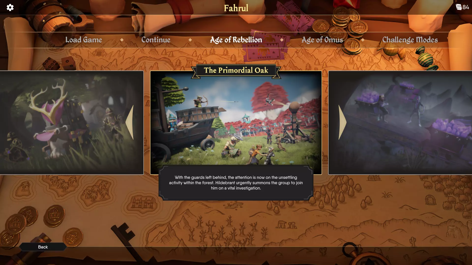 《为了国王2》其他更新内容 除了“混沌之子”冒险和“命运工匠”角色包带来的精彩内容外,我们还新增了一些功能,调整了游戏的部分区域,并修复了大量玩家反馈的漏洞。 主菜单 - **我们对主菜单进行了大幅动态化更新**,包括完成特定任务后添加项目、改进镜头过渡效果以及重新设计新闻板块。 - 主菜单现已实现动态化,完成游戏内目标后将更新特定项目。回归玩家若已满足解锁条件,可能会看到新内容。 - 主菜单各模式间的镜头过渡现已更加流畅。 - 首次启动《为了国王2》时,将新增难度警告提示。与《命运之手》类似,这会提醒玩家前方的危险。 我们对新闻系统进行了全面改革,以便在有更新和公告时更好地通知玩家,并在游戏内的剧情商店/平台商店中为DLC添加了更好的链接。 **冒险选择** 除主菜单外,冒险选择界面也进行了重大更新。 - 冒险现在以轮播方式显示,使选择冒险时的流程更加直观。 - 冒险标题现在会显示一个皇冠图标,表示该冒险已完成的最高难度等级。 - 第六章“混沌之子”默认解锁,但会对尚未通关前5章的玩家显示剧透警告。