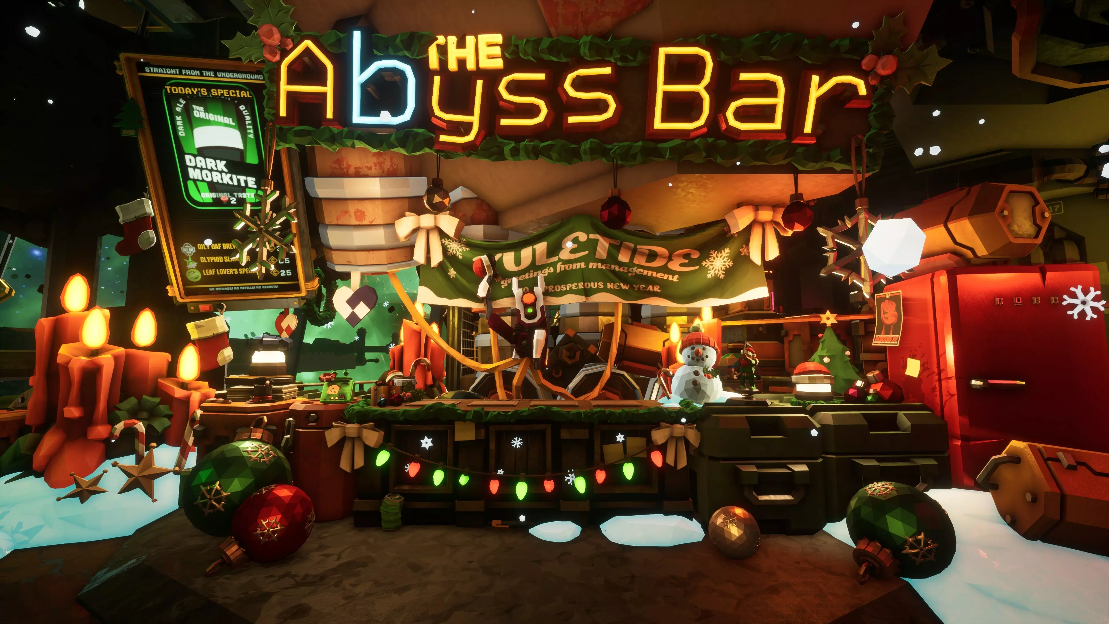 太空 rig 开始充满圣诞氛围了 没有装饰,何谈节日!实际上,并没有节日假期,但装饰还是如期而至。 太空 rig 已装点上五彩斑斓的灯光和饰品,温馨的圣诞音乐也在播放。管理层没有预留铲雪预算,所以你得自己处理积雪。友情提醒:酗酒与打雪仗的后果由员工自行承担(费用也需自理)。