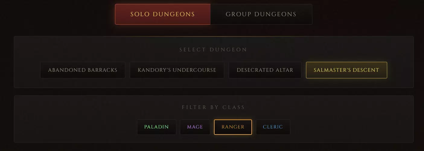 ### 地下城速通排行榜 服务器现已开始记录玩家通关地下城的速度。**完整通关要求击杀地下城中的所有NPC,你的通关时间将被记录并显示在排行榜上。** **每个职业都有独立的排行榜**,该机制同时适用于 solo 地下城和组队地下城。 **Solo 速通必须在未接受外部增益的情况下完成**,若进入地下城时带有其他玩家施加的增益效果,本次速通将不会被记录。不过,**使用变形卷轴获取跨职业增益是允许的**。 最快通关时间的奖励待定。