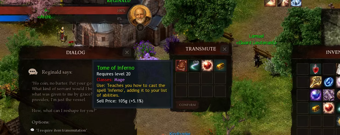 Changelog 1/22/2026 Resistances assigned to miscellaneous elites reverted until a system exists for overcoming them Disallow opening trade with someone who is in combat in the open world 2x Magic Dust combined with 5x Major Orbs can craft a Divine Orb Fix bug that was causing left and right audio to be reversed on wide resolutions Increase gold dropped by mobs in Telamont's dungeon by 25% Increase gold dropped by bosses in Telamont's dungeon significantly Reduce the size of the largest trash pack in Telamont's dungeon Raise barracks key drop rate to 3% Dale mobs spawn faster Adjust some LOS corners in Telamont's dungeon1/23/2026 You can no longer reset a dungeon while already inside one1/24/2026 Fix bug where spell sounds originating far from your character were playing at max volume1/25/2026 Wings of Freedom buff has a slightly more visible effect Fix bug where a party member could queue the group for arena while a member was already in arena Enemy players now have class-colored frames around their overhead health bars Bind Spirit lasts 8 seconds against players, up from 6 seconds Knight Maximus now drops 3 keys to St. Revere which grant access to the first level of Desecrated Altar. The boss of the upper level drops Godly items and orbs. Mobs drop much more gold than Undercourse. Bosses drop Magic Dust Magic Dust can be combined with +2 tier gems to create Scrolls of Agility V, and equivalent scrolls for each stat type Barracks key drop rate increased to 4% Fix Mages being able to teleport-skip most of the new solo dungeon upper level Slight increase to Ebondeath's health Ebondeath's gold drop tuned to be in line with Tower Reduce Ebondeath's chance for three Godly drops; still high chance for multiple, with a chance for one Holy Flawless Gems can now be crafted: combine 5x Refined Gems with 5x matching Scroll V, plus 5x Magic Dust and 1x Treasury Gold Fix bug where Topaz/Amethyst recipe materials were reversed Telamont drops 4 Essence instead of 1 Ebondeath drops approximately 60k gold1/26/2026 Fix bug where movement wasn't disrupting Illusion Gate Increased gold drops for Knight Maximus, Kandorys Centurion, and Dishonored Sorcerer in Undercourse Increased gold drops for Corrupt Cleric and Fallen Guard in Altar Sarloch the Betrayer drops up to 20k gold Barracks key drop chance increased to 5% Solo dungeon keys are now soulbound Undercourse keys can be sold to any vendor for 20k gold Keys to St. Revere can be sold to any vendor for 15k gold Trade chat added via /trade. Added /mtrade and /umtrade commands Linking items in All Chat is no longer allowed Telamont drops 1 Essence again, but Arcane Orb transmutation success is now assured Durability system revised: instead of a constant 60-second check, durability loss now uses an accumulative timer that increases while in combat. Faster clears mean less durability loss Durability loss disabled when not engaged with NPCs Cooldown on All Chat reduced to 60 seconds. Trade Chat also has a 60-second cooldown Players under level 25 can use All Chat Solo dungeon bosses now aggro mobs in the dungeon when engaged Knight Maximus always drops a Holy item Melchon now drops four sets of 10 keys to Tower (consumed on use, tradeable). Keys stack to 20. Melchon has a higher chance at dropping a Godly item Fix bug where going above 10k CR was not possible (exceeding the cap is intended) Last boss of Barracks won't zone aggro; the other two solo dungeons will Strongbox behind Sarloch the Betrayer moved to the side and set to level 25 Fix bug where spell crit was based on your level instead of the target's Added a bridge connecting the two sides of the first half of Altar1/27/2026 Bank size increased by 10x Fix bug with Magical Dampening having the opposite effect. Reduction amount also adjusted You can now craft one-time-use scrolls that cast abilities of any class with Transmutation. Not usable in arenas or group content. Usable in solo dungeons and the open world1/28/2026 Fix bug where entering Tower without a group would consume your key before throwing an error Bank sort button now sorts the current tab, not the entire bank Server now tracks dungeon clear times. A clear requires killing every NPC. Ladder page will be published after it populates. Rewards for fastest times TBD1/29/2026 Archduke Zargan will aggro the zone when engaged. Does not apply to Lower Garrison or Demiplane Solo dungeon speed runs won't count if you enter with buffs from other players. Using scrolls for cross-class buffs is allowed. Solo ladder will be reset Fix bug where Scroll of Teleport could not be used properly with ground targeting Revise affix score math to ensure a difference between Fine/Superior/Exquisite tiers Affix score bonus now avoids HP/MP and prioritizes stats like AGI/INT/WILL instead1/30/2026 Fix bug where mobs far from a boss with zone aggro would teleport instead of walking Add solo dungeon Salmaster's Descent as the second half of the dungeon in St. Revere1/31/2026 Fortitude is less effective against melee attacks and abilities (does not apply to Cleric melee) Arena pillars made bigger and corner LOS adjusted to make escaping more difficult2/1/2026 Undercourse drops 2 keys instead of 3 Game chat font made bigger Game chat window made taller Chat window no longer wrongly auto-scrolls as messages come in Killing a player in a PvP zone robs them of 1k gold You can no longer guild/party invite a player in combat Fix bug where chat messages would go outside the width of the chat box2/2/2026 Buff Klauth slightly and increase his gold drop 5x Flawless Diamonds, 5x Magic Dust, 1x Draconic Treasure, and Treasury Gold create a new tier +5 gem New zone Thicket of Wyrms added near Fireshear with powerful enemies. This area is Contested Enemies in Thicket of Wyrms can drop Draconic Treasure and Flawless Diamonds at a low rate Increase range on Mage's Antimagic to 30y Channel sizes increased to 200 players Mobs in Thicket of Wyrms drop more gold Reduce HP of mobs in Thicket