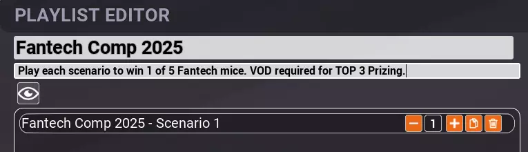 截止日期: 4个场景,每周一个。 比赛将于5月6日结束。 三种参与方式: ①在“在线播放列表”标签页中查看“Fantech Competition 1 - 2025”播放列表。