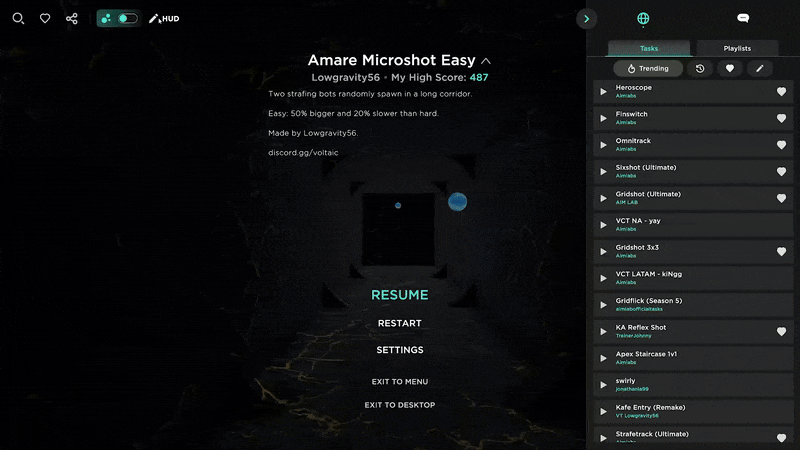 《Aimlabs》更新内容 1. **全新 HUD 界面**:现在你可以移动、调整大小或隐藏 HUD 元素! 2. **目标进度条**:实时追踪你的分数! 3. **⚡ 性能优化**:Aimlabs 现在启动速度比以往更快! 4. **BUG 修复**: - 快速重启后机器人行为恢复正常 - 登录/登出时不再出现卡顿