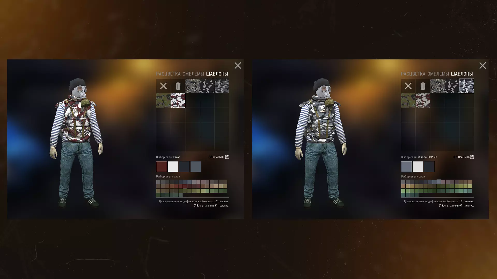 1. 新增通过菜单中相应复选框切换武器显示的功能。 2. 新增涂装模板功能,其使用方法如下: - 选择迷彩或图案(帽子适用),然后选择所需颜色; - 使用相应按钮保存模板; - 选择新装备并进入“模板”部分,所有已保存的选项将存储在此处; - 现在,你的装备已按你设想的风格涂装,只需为该改装付费即可。 3. 一些重要细节: - 已保存的模板可随时删除或覆盖,系统会弹出警告窗口供你确认,以确保操作便捷。 - 与徽章类似,若某件装备无法选择迷彩作为涂装选项,则迷彩图案也不适用于该装备。