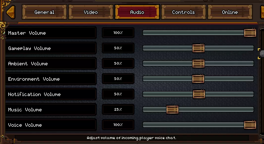 音频选项卡中的语音音量设置 配置语音聊天