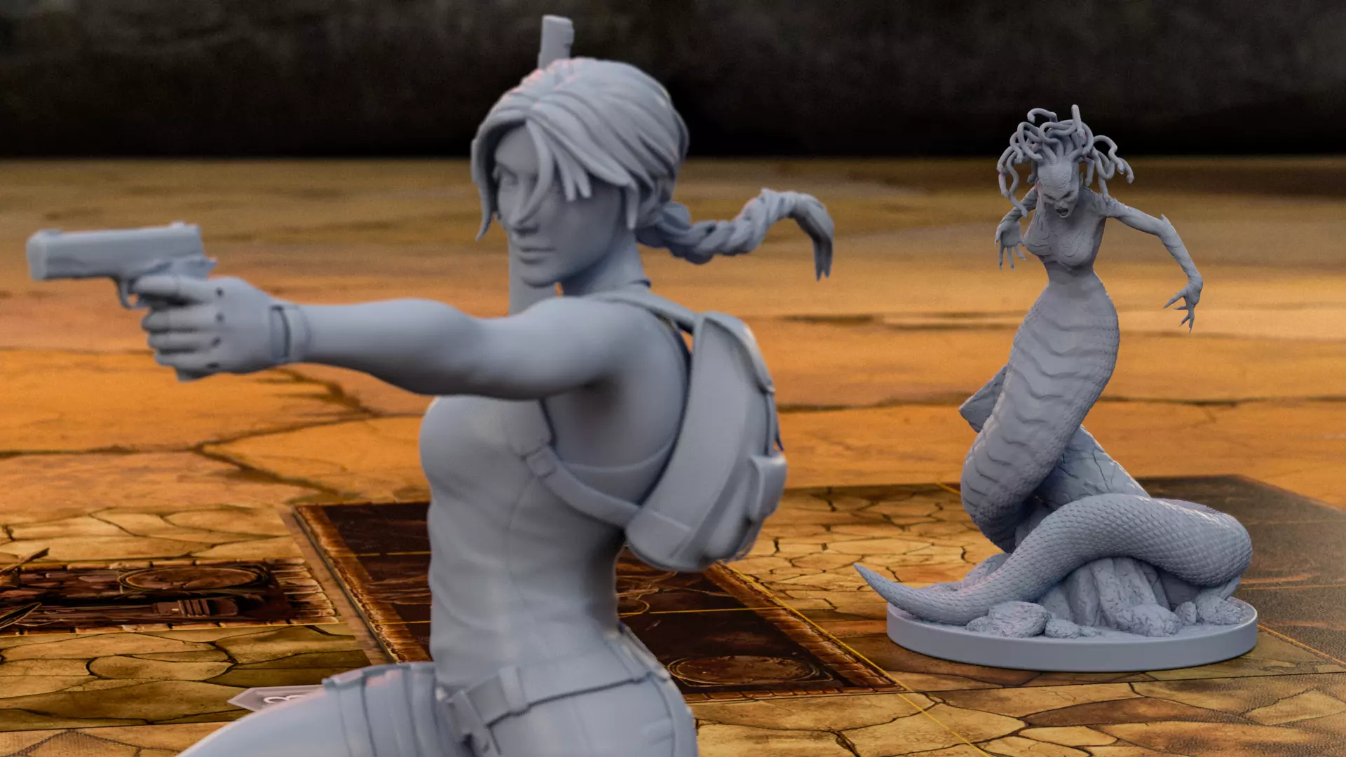 三个头颅,三条血条,一场噩梦。 它每一个咆哮的头颅都是独特的威胁——并且会强化不同的属性!狮子头颅能提升攻击力,山羊头颅能加快移动速度,巨龙头颅则会延展其致命攻击范围。 击倒一个头颅,你就能破除相应的增益。但你会优先攻击哪个头颅呢? 是要减缓这头野兽的速度,削弱它的攻击,还是缩短它的攻击范围? 没有简单的答案——只有残酷的抉择、不断增加的压力,以及一个迫使你快速思考否则就会惨败的 Boss。 一半是掠食者,一半是谜题,全然是狂怒。 8英寸劳拉树脂雕像