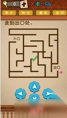 《最强的大脑》第96-100通关攻略 第96关: 走到出口处。 答案:下面按键控制,不要走里面,直接从外面走,不要爬到线即可。