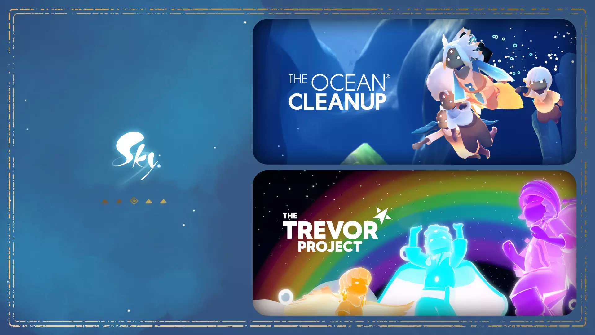 您的持续支持为《光·遇》核心价值观带来了现实世界的影响。我们一直被这个社区团结协作所能达成的成就所鼓舞。 让我们共同创造一个更加光明的世界,无论是在《光·遇》中还是在游戏之外。 如需了解这些杰出组织的更多信息,请访问它们的网站:The Ocean Cleanup 和 The Trevor Project。