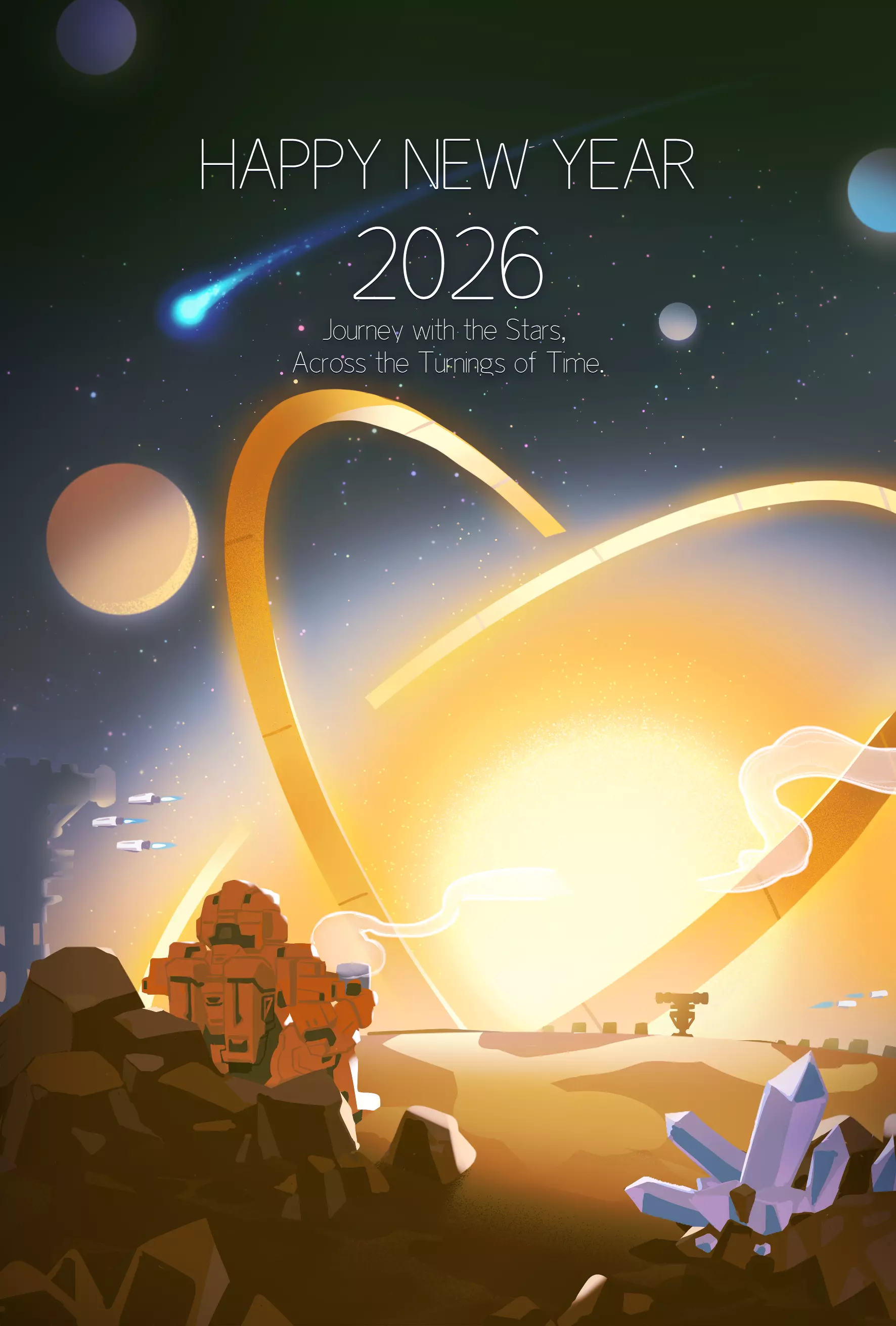 新年伊始,时光向前。 无论你身在何处,步伐是快是慢,总有一个宇宙在等待你的归来。 感谢你的每一次游戏体验、每一份努力以及每一刻的坚持。 在新的一年里,《戴森球计划》仍将伴你左右,一步一个脚印,慢慢建造,向着遥远的星辰迈进。 工程师们,新年快乐!