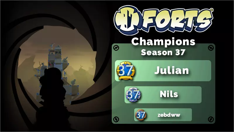 各位《forts》的粉丝们,大家好! 恭喜 Julian 获得第 37 赛季的冠军。Nils 获得亚军,zebdww 获得季军。前三名将分别获得金、银、铜牌,而所有排名前 20 的合格玩家都将获得第 37 赛季奖牌。同样恭喜所有获得奖牌的玩家! 1v1 排行榜: 1. Julian 2. Nils 3. zebdww 4. finn gonna get top 3 5. Ryabzyk 6. Александр 7. Magi washed in cs2? 8. Доброе утро 9. 7891 10. 90315 11. ПОВЕЛИТЕЛЬ ХАЙПА 12. BiXel 13. srakoeb69 14. [HYP] Domy 15. klaualles 16. [BOG]#Kriegeule #Salzierteeule 17. Ynfynyty 18. [BÄH] Hype 19. Diversant 20. bilibili_模组小白 排名统计数据: - Steam 特卖再次来袭,全球玩家社区人数激增。 - 由于前期进攻减少,本赛季的平均比赛时间有所增加。- 幽灵(Spook)再次成为最受欢迎的指挥官,同时也拥有最高的胜率。 - 随着鲍尔斯(Balls)从轮换中移除,肖肯诺(Shockenaugh)的 popularity 下降幅度最大(5.1%)。 - 第 38 赛季的排位仲裁现已上线!