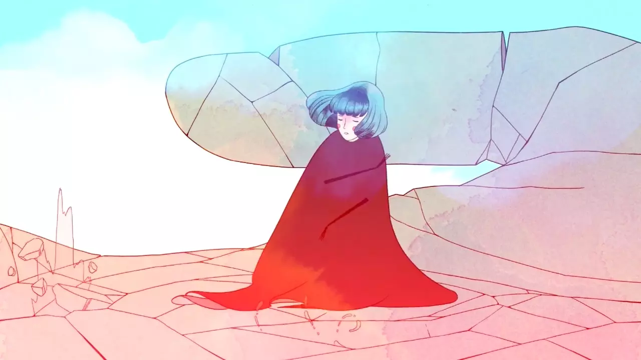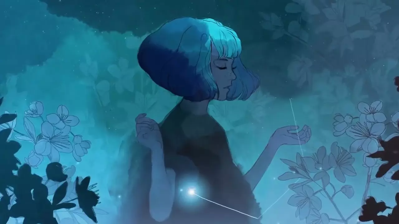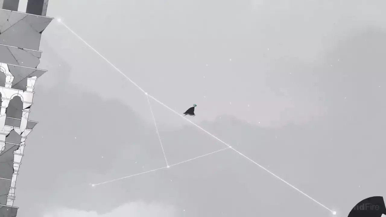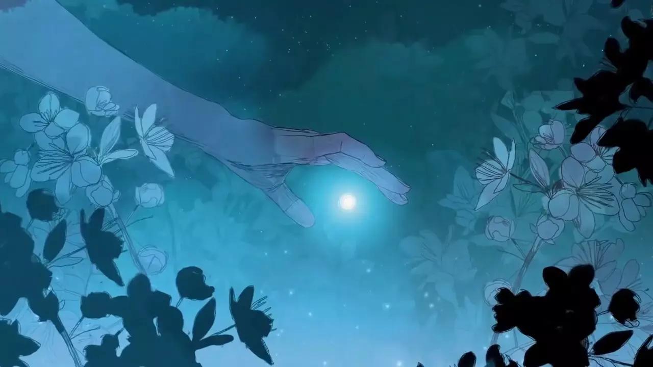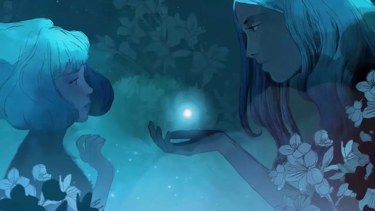 只有在你收集到所有回忆的情况下,才能在游戏结尾看到她。在这之后,你就会明白女孩和雕像并非同一人:雕像是母亲,而女孩是她的女儿。显然,这段回忆是母亲关于女儿的最后一段或最鲜明的一段美好回忆。没错,正是母亲的回忆,格里斯(Gris)只是关于女儿的回忆。在这个场景中,母亲抓住了一只萤火虫,仿佛抓住了一颗坠落的星星,她将萤火虫藏在掌心,然后展示给格里斯看。