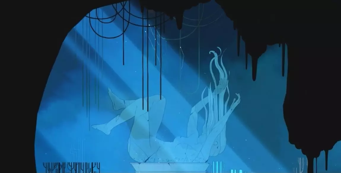 并获得声音,以便告别并安抚母亲。 有人认为,第五阶段——接受——尤其是当它在游戏中以静静躺着的雕像形式呈现时,代表着母亲的死亡,而游戏就是格里斯(Gris)对她死亡的体验,但我不同意这种说法。这只是一个象征,代表着母亲接受自己孩子死亡时的平静。 回想一下“抑郁”雕像,母亲仿佛沉入水中,坠向水底。不知为何,所有人都直接将“接纳”雕像视为母亲的死亡,而“抑郁”雕像却被当作一种象征。不,这些雕像都只是象征而已。 而且,母亲躺在灵床上的雕像姿态,很可能象征着死亡的念头(那些阴暗、黑色的想法),毕竟心爱的女儿已经不在了,活着还有什么意义——内心一片空虚。接着我们看到,空间被黑暗填满,所有回忆都消失了——空虚降临了。..