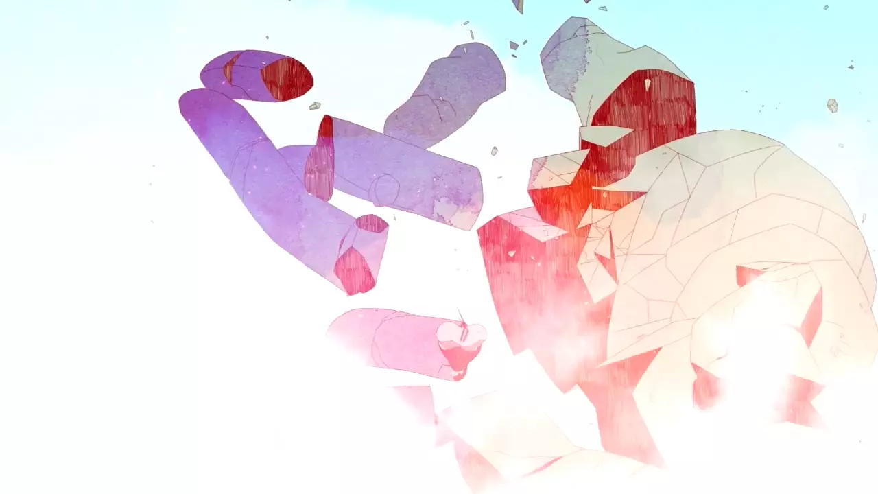 突然,声音消失了,雕像的手掌开始发出更剧烈的碎裂声,格里斯试图躲在整个雕像后面逃生,但未能成功,因为雕像倒塌了。