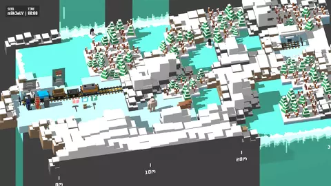 第三个生物群系——雪地生物群系中不再有土匪,但新增了雪人。雪人会踩踏地面,导致玩家掉落手中的物品。再加上雪地环境,使得物品掉落变得非常麻烦。雪地会减缓玩家的移动速度,并且积雪可能堆积到足以覆盖物品和路径的程度,这意味着玩家需要留意关卡布局。树木很容易辨认,但普通石头和坚硬石头难以区分,因此注重细节非常重要。在这里,轻型货车至关重要,它可以融化积雪,启动助推功能时能清除屏幕上的大部分积雪。