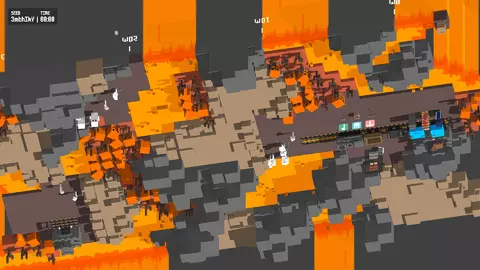 The final biome, mars, carries over the properties of the 5th biome expect the train is now on a normal surface so less bridging is needed, but much pathing is neded as the screen will be filled with resources and little open areas. In every level there will be a path of green blocks from the top to the bottom of the screen that must be cut through to the other side to continue the train. This must be attacked by the axe/pickaxe to go through. On these ‘vines’ there will be 3 heads that shoot fireballs at players and kill them unless the player is inside an oxygen bubble either by the train or bucket. There is still no nighttime, bridging must be done by stone, and oxygen is still an issue. One benefit is due to the massive amount of resources, especially with dynamite, players will rarely have to struggle with materials. Tips & What Not To Do This is a brief sections on bad habits players tend to have and why these habits are bad. Not every point here is necessarily bad, but your time can be better spent elsewhere on the train. First which is number one is placing the last track early. You should give players enough time to build tracks to start the next level to stall the train in the beginning and clear the wood/stone around the station so its not claustrophobic start and make snaking the train easier. Another bad habit is to grad a track early and hold it, waiting by the end to place it. This is useful when the train gets close, but some players have a tendency as soon as there is enough available track, usually while the train is still 15 out, to wait. Instead help craft rails and bring them forward for the next round or clear a path for the beginning of the next round. As stated earlier, dropping your tool to bring resources forward is a waste of time as instead you should clear around the station. Obviously if you have nothing else to cut/mine, making a resource pile should be your next move but only if there is nothing left for you to cut/mine. Having the axe/pickaxe is not the easy job, just the tedious one. You need to constantly be pathing and clearing ways for other players on top of generating resources. Not paying attention to water access or access to other materials is a problem most have. Mining/chopping a single deposit is a problem and very bad, you should always mine/cut around the tracks and constantly move forward. On a similar topic don’t drop your tool to pile everything into piles, leave everything scattered and keep generating new materials because once you stop generating, nobody else will. Making large stacks can actually be a problem for visibility, so discuss how to setup large piles whether as a single large stack or several smaller ones before doing so. When crafting tracks don’t start your pile in the middle of the level. All you will do is waste time trying to bring rails forward instead had you placed them or used them to snake the train, as 9/10 times they just get left behind. Even if bought forward the time wasted to do so would have been better off to extend the path until the station is in sight, then you can pile them at the end. When laying tracks keep an eye on the easiest path and coordinate with the team. If the team is slow or the train picks up don’t build direct paths, learn how to stall the train so your team has more time to path ahead. When laying tracks avoid being in the middle of the path or cutting across unless necessary, and coordinate when doing so. Being on the side of a path gives more space and pushes the train against a rock wall that people don’t need to access. Obviously if there are resources on both sided of the train stay in the middle, but do not give more work when the path can be simplified (Ex the top of the map the train can be push directly to the top, nobody will have to go on the other side, and try to hug unbreakable rocks as once again, player will not have to be on that side of the train so plan ahead before blocking a side of the train off. When laying tracks keep an eye on your corners. Keep your train as straight as possible and in clearings so players don’t have to spend more time clearing wider paths for the train and can give room for snaking, meaning more time for players to path. When restocking pay attention to overall resources. Don’t waste wood on the light bulb or stone in the charger if it means you will run out of tracks. Resource management is very important and wasting mats on wagons instead of carts can quickly kill a run. Very important to pay attention to the objective. Early stages its important to make every bolt count to max out upgrades while the train is slow and stockpile for quick future upgrades so missing an easy objective such as not killing animals or only one player uses a tool is a simple mistake that can be easily avoided. Try to learn every job in case a player dies or becomes trapped behind the train, you wont feel pressured trying to not mess up placing tracks or not paying attention to clearing path(s) ahead when players become unstuck. If you find yourself stuck open your menu and select respawn. It will spawn you at the FRONT of the train with whatever you are holding, useful for either becoming unstuck or as an emergency to bring rails forward. You will have to deal with the delay of floating down, but it can save the run if used early enough. For Hard and Extreme you will constantly run into chokepoints, and occasionally on Medium. The game will ALWAYS have at least 2 tiles to walk through, one for the train and one for the player. Pay close attention to the terrain ahead and plan accordingly. Consider getting the ghost upgrade early as if the loop becomes too big players will waste too much time opening it and walking around instead of just hiding in the ghost wagon to follow the train through the chokepoint. You can stall in biomes for bolts of for looking for a specific wagon to buy. Note in order to upgrade you must at least reach the next station AFT