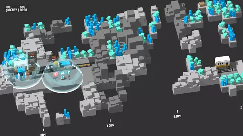 第五个生物群系“太空”起初会给玩家带来一丝喘息,但很快就可能让玩家应接不暇。水不再是问题,取而代之的是玩家需要担心氧气值。水桶和水箱现在兼具氧气泡和护盾的功能。玩家可以飞行,但仍需大量使用石块搭建桥梁,为火车开辟路径。 **此处的主要障碍在于规划和清理轨道路径**,因为散落的资源可能堆积成问题,同时还得适应氧气值的管理。陨石会随机生成,**它们能够摧毁路径和轨道**,因此使用水桶作为护盾来阻挡陨石至关重要,必须时刻留意以防陨石落在关键位置。该区域没有敌人需要担心。