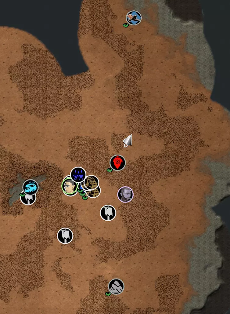 第二个生物群系“沙漠”与第一个非常相似,但这里不会下雨,因此强烈建议在进入前升级好水源。匪徒依然以“不法之徒”的形式存在,河流则不再出现。取而代之的是更少的空地、地图中央更多的坚硬岩石,以及更需要专注于清理前方道路。