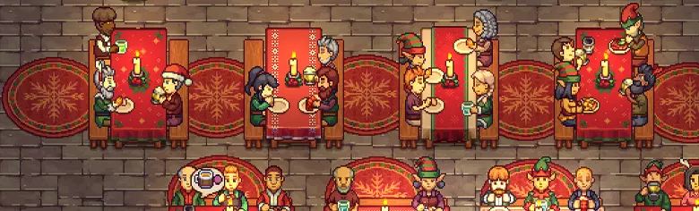 准备圣诞饮品与菜肴 制作美味的圣诞饮品和菜肴(它们将以绿色轮廓显示)。游戏中共有13种食谱和60种用于装饰酒馆的外观物品。