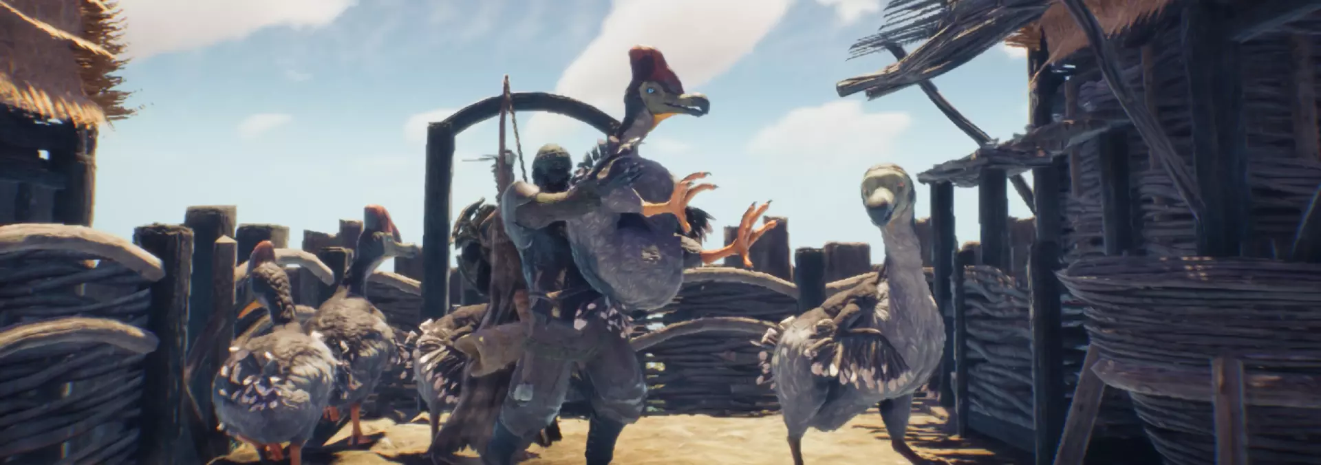 新农场动物:小鸡(Kyckling) 你为何要冒险踏入沼泽部落的领地?因为沼泽群岛现在迎来了我们的第一位有羽毛的朋友——小鸡。小鸡是一种大型不会飞的鸟类,在沼泽中筑巢,你可以像捕捉小狼崽一样,用精心布置的陷阱(以龙珠果为诱饵)来捕捉它们。一旦被关入笼中,你就可以将它们带回家,并放入全新的小鸡围栏里! 新建筑:小鸡围栏 小鸡围栏与小羊围栏类似,可用于驯服和繁殖小鸡。只要确保围栏内同时有一只雄性和一只雌性小鸡,就会开始孵化新的小鸡宝宝。它们会持续产蛋,也可以被宰杀以获取肉和羽毛。现在你的派和箭矢生产应该能完全自给自足,无需再依赖采集者了! **新敌对派系:沼泽部落** 一群失落的诺斯人部落已迁入沼泽群岛。这些被放逐者遗忘了诸神之道,转而崇拜一个邪恶的怪物。显然,被诸神驱逐后他们已失去理智,因为他们现在竟希望与爬行者结交,甚至变得和它们一样。 他们戴着用昆虫碎片制成的丑陋面具,自豪地穿着怪物的皮、尖刺和鳞片,并使用邪恶的肉质网布拼凑出噩梦般的服饰。尽管如此,他们仍是诺斯人,这意味着他们依旧是可怕的战士,所以在踏上他们的海岸前,务必带上一支精锐的维京队伍。