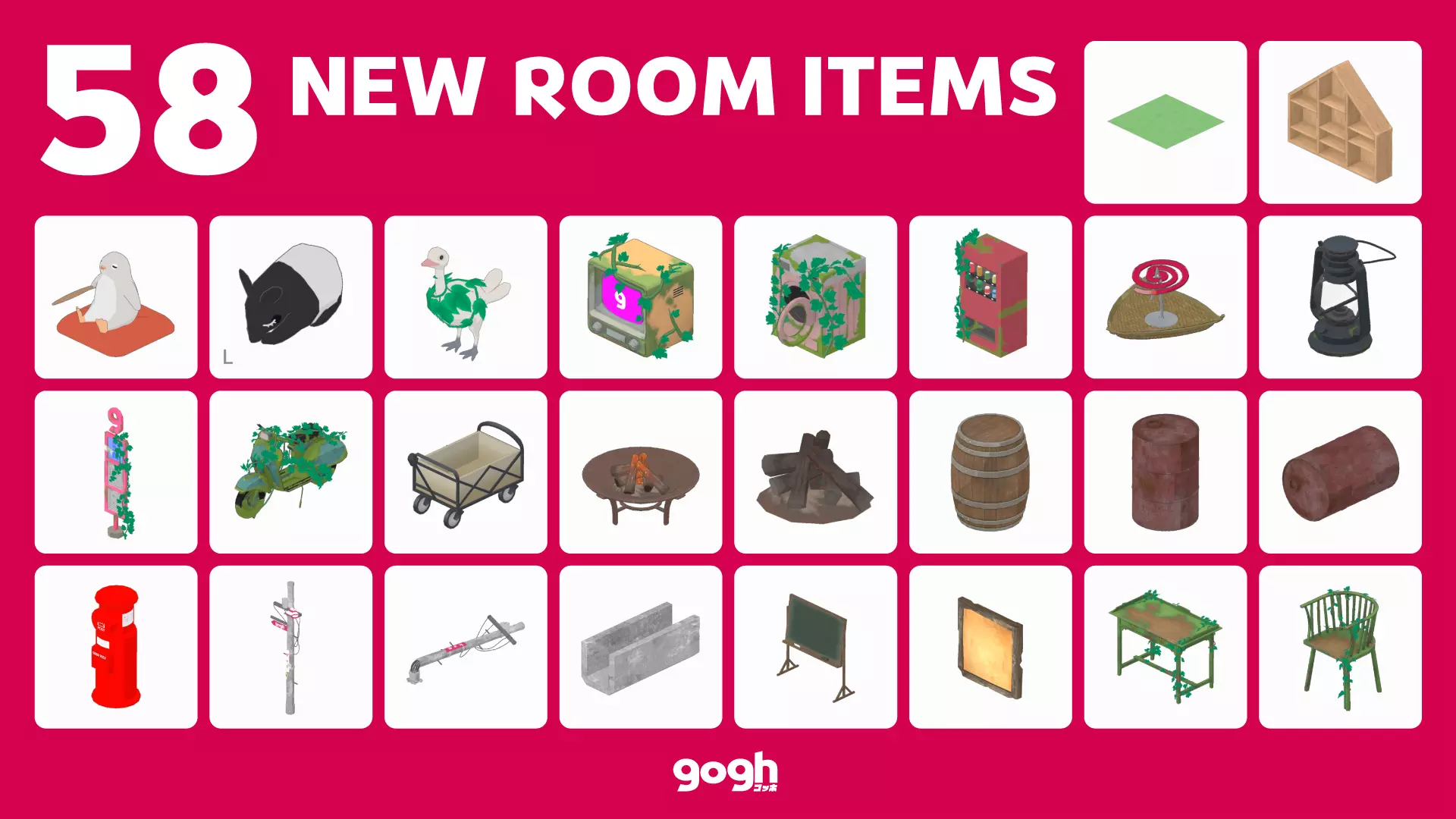 新增58个房间物品! 我们添加了多种非常适合户外使用的物品! 当然,它们也可以在室内使用。 我们已经迫不及待想看看大家会打造出怎样的户外空间了——开发团队也同样期待!