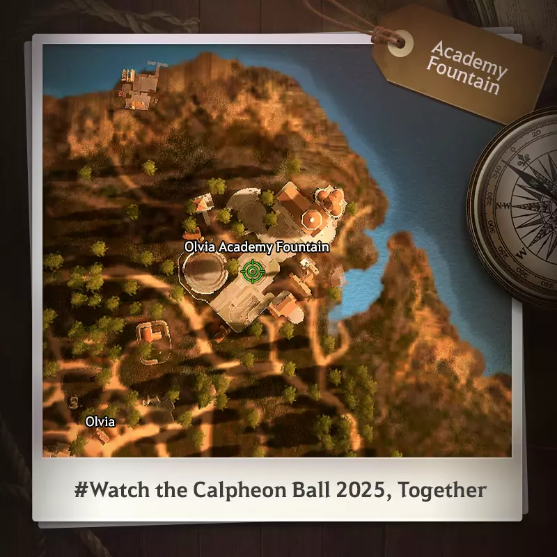 《黑色沙漠》Calpheon Ball 2025 共同观看活动公告 2025年12月13日(周六)06:30(UTC) - 12月18日(周四)维护前 Calpheon Ball 2025是我们分享故事的时刻,一场充满感恩、激动与精彩故事的庆典。 一同加入奥利维亚学院的庆典活动吧! * **活动时间**:12月13日(周六)06:30(UTC),即庆典开始前30分钟 * **活动地点**:奥利维亚北部,前往奥利维亚学院喷泉处 * **活动内容**:与其他冒险家一同观看Calpheon Ball直播 * **温馨提示**:等待期间,寻找[GM] Silver & Gold可获得惊喜奖励! * 集体观看的服务器将在12月13日(周六)的单独公告中公布。 奥利维亚学院喷泉在哪里?[table] [tr] [th]学院喷泉地图[/th] [/tr] [tr] [td]