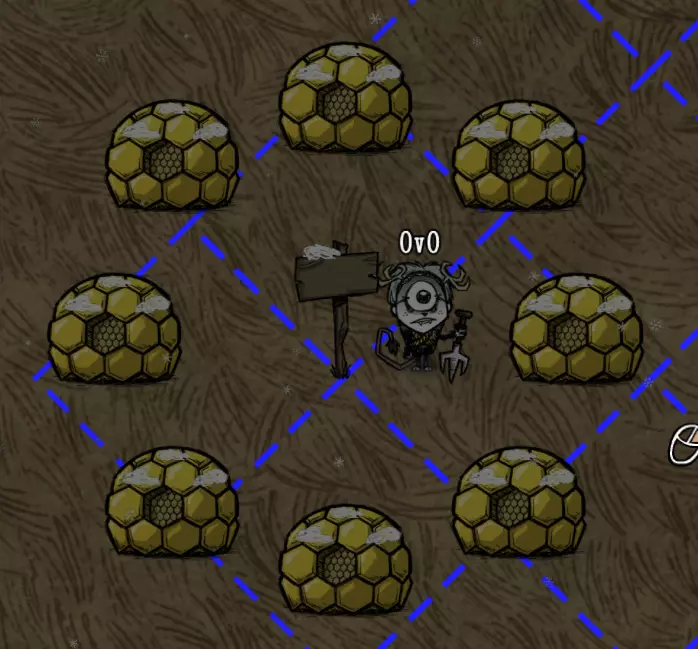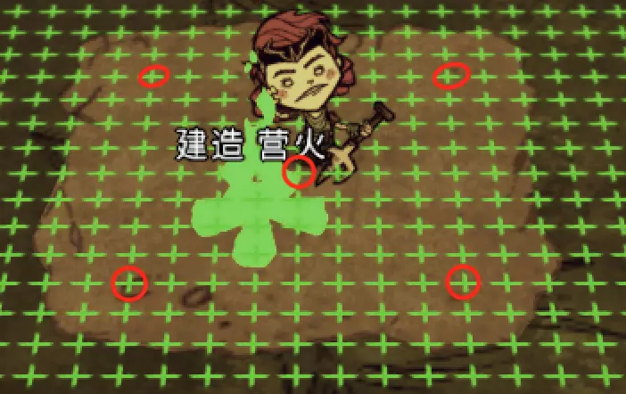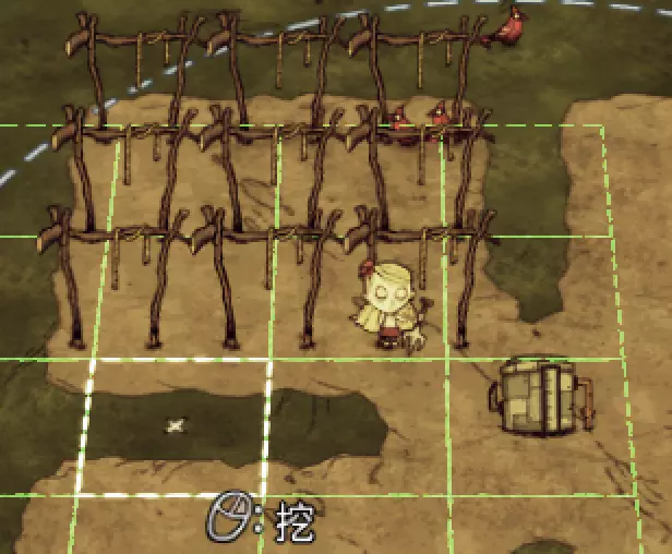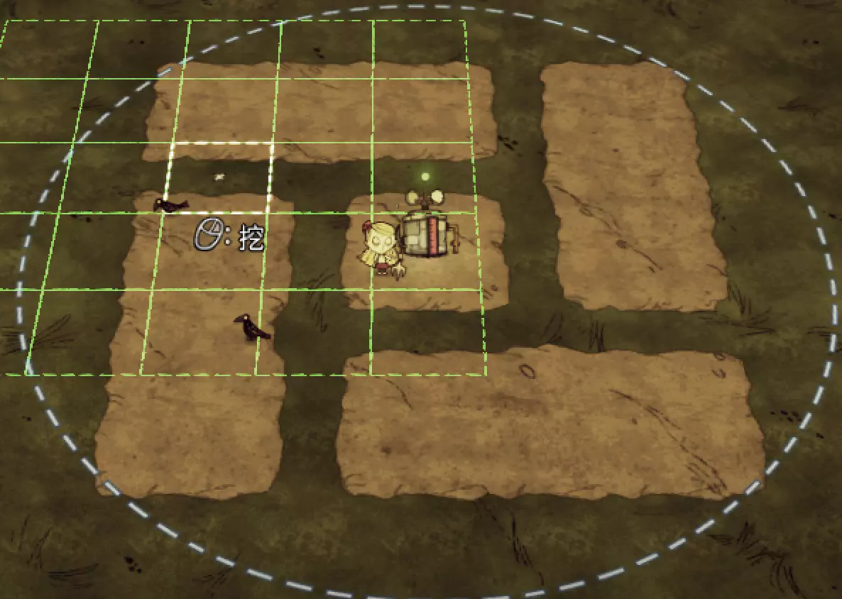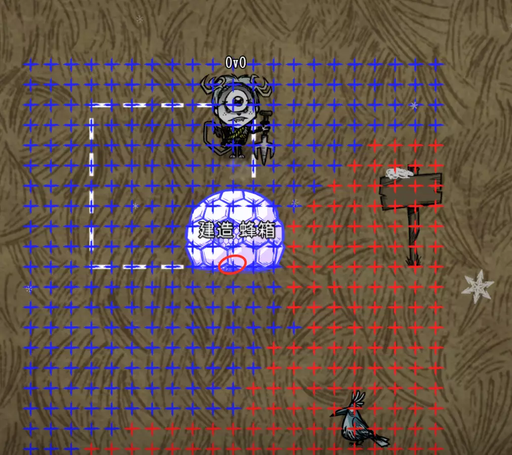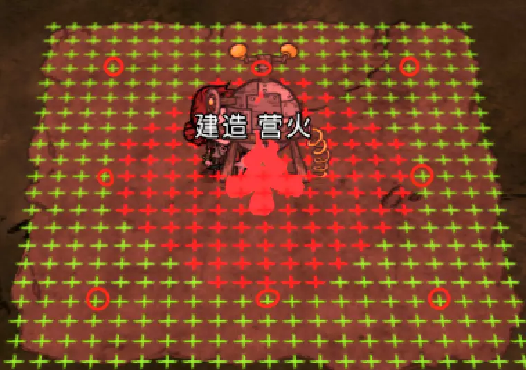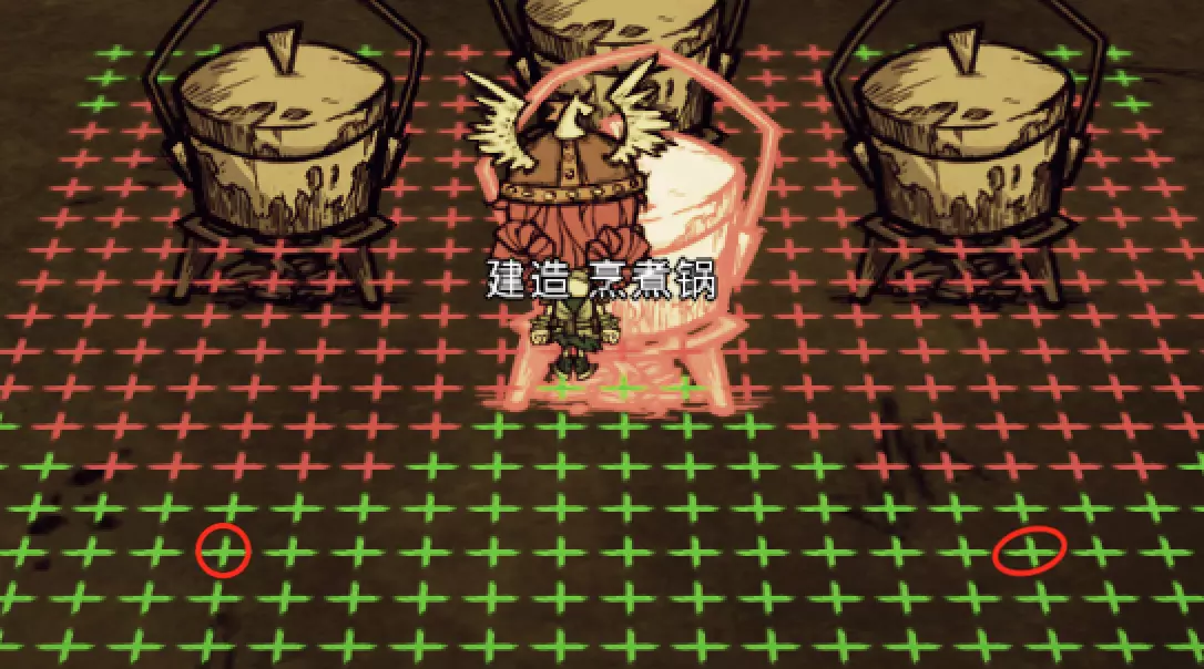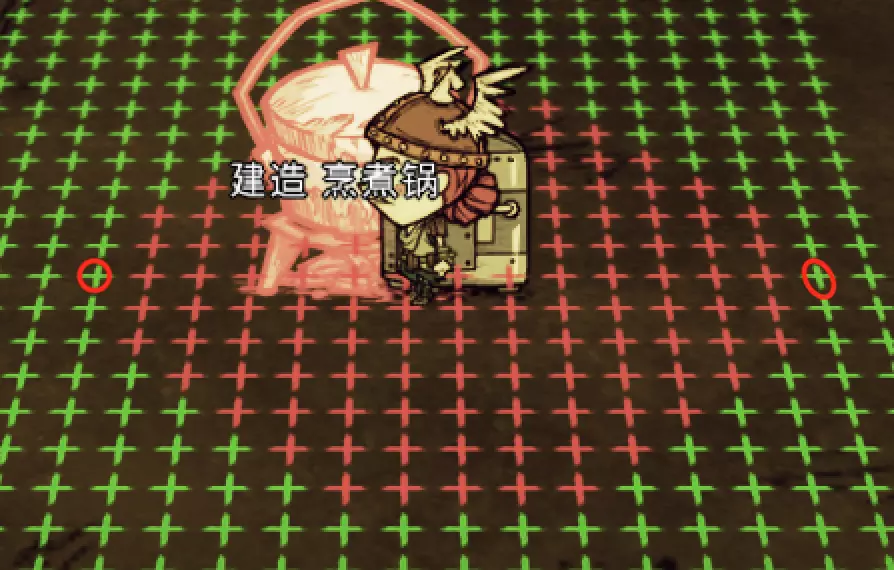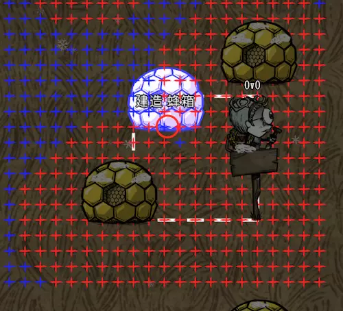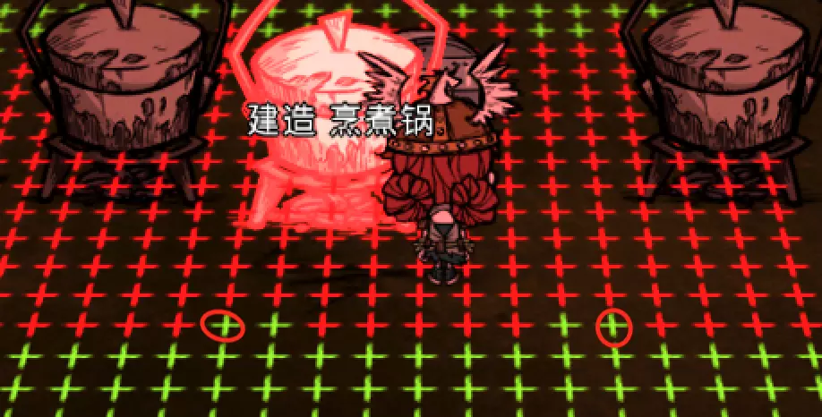 教你如何规划你的基地,想不想成为建家大佬呢,接着往下看吧 前言 这篇文章是讲解一些建家方面的常识技巧,教你如何规划自己的基地,我不会给出成型的豪华基地,那样只会限制想象空间,让我们创造出属于我们自己的基地吧! 我们建造的基地要遵循便利,实用,合理等原则 便利:我们在工作或吃饭的时候不需跑很长的路,比如锅和冰箱,吃个饭如果要跑一个屏幕的话,只怕早饿死了。实用:基地成型快,需循序渐进。比如我特别喜欢烹饪,建了15个锅的基地,结果建家时把锅都摆上了,却发现没石头做农场,最后锅是有了,食物却没了= = 合理:基地建筑的摆放要合理。夏天有自燃现象,需要灭火器,要规划好建筑位置,确保它们都在灭火器的有效范围内,但灭火器对火坑可不太友好! 先了解一个格子: 建家当然少不了干草叉,干草叉将《饥荒》世界分成了一个一个的小格子。但要想把基地建得整齐,只有干草叉是不够的(难道让我一个格子种一根草吗OvO),还需要网格种植mod,该mod能将每个格子分成更密的点。 怎么找格子的边角: 中间的叉是格子的中心。